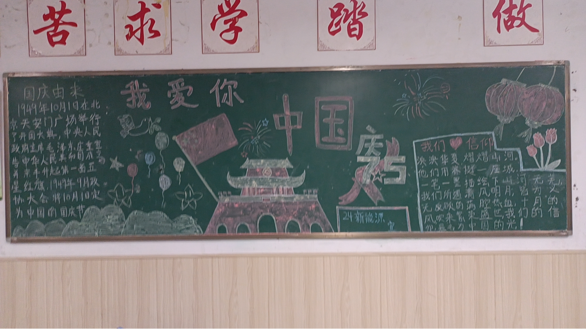 以手执笔,心向中华。在“欢度国庆”为主题的手抄报、黑板报制作活动中,同学们认真而专注,以画为笔,以爱为笺,将对党和祖国的热爱之情,化作灵动的文字和精美的图案,描绘着青年一代热烈而持久的爱国之情。