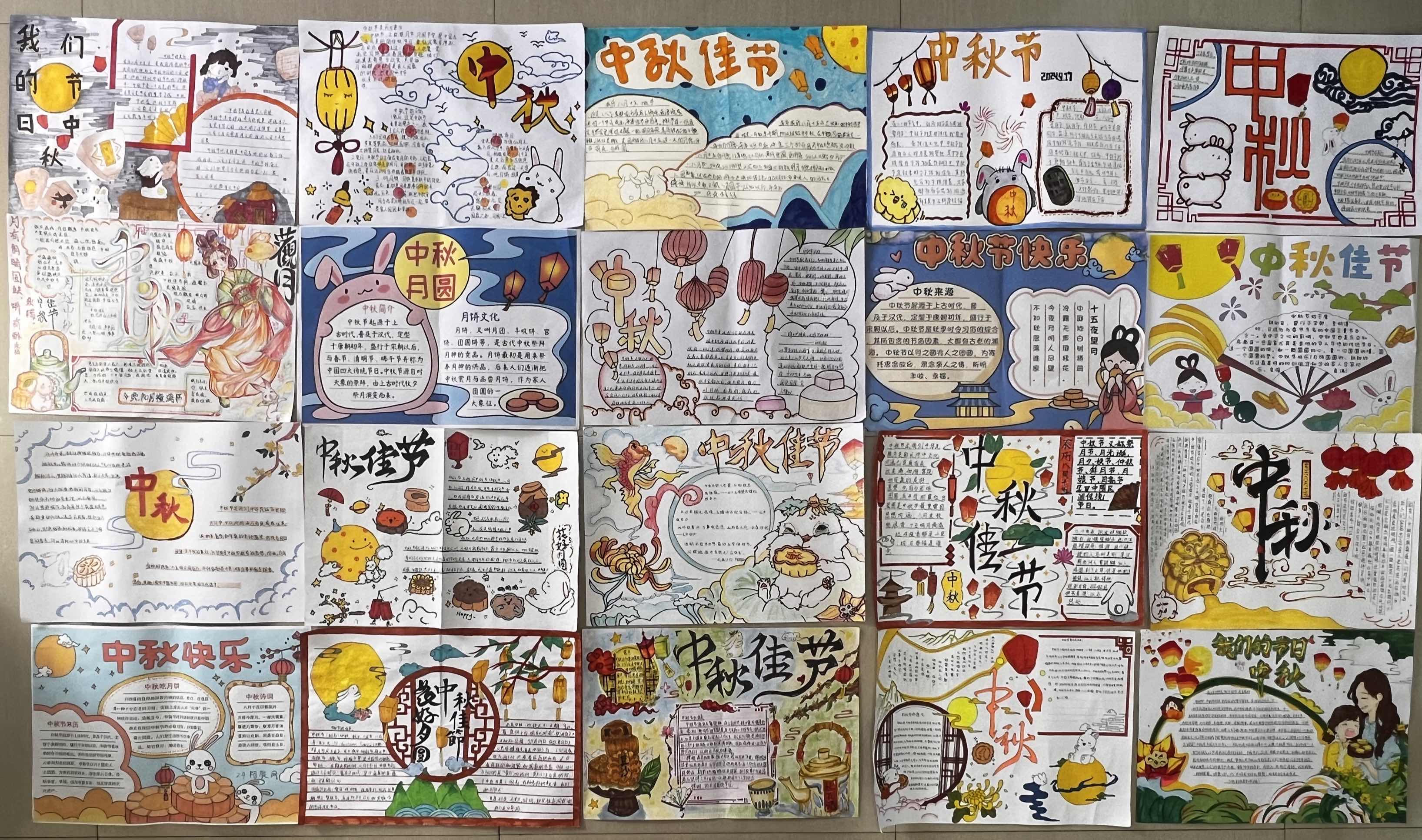 花好月圆佳节至,手绘中秋情意浓,德育处此次还组织开展了中秋节手抄报绘制活动。学生们在搜集素材、绘制画面的过程中,进一步增强学生对传统节日文化内涵的了解,加强爱国主义教育和传统美德教育,引导学生积极践行社会主义核心价值观,共筑中国梦。