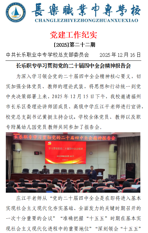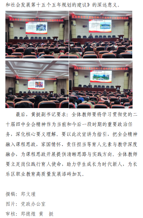 长乐职专学习贯彻党的二十届四中全会精神报告会