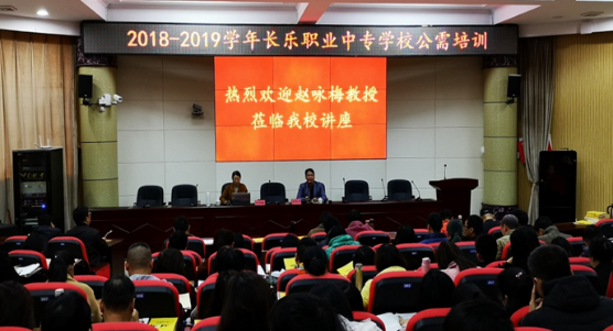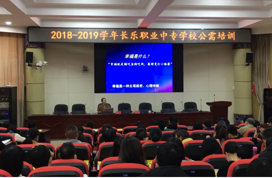 2019年3月17日,福州市人社局在长乐职业中专学校开展公需培训,特邀福州市委党校赵咏梅教授作积极心理学专题讲座《幸福的方法》。