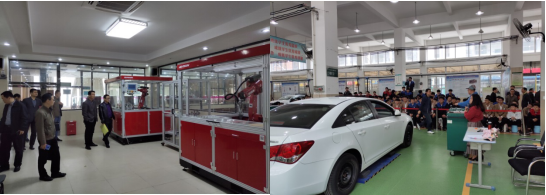 来宾们重点检查了学校的各专业实训车间、数字化技能教室和虚拟仿真实训室,还深入查看了实训课的教学情况。每到一处来宾们或饶有兴趣地驻足观看,或详细询问情况,全面深入的了解了我校各方面的建设发展情况。