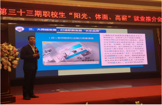 2019年4月18日,由北京人才资源开发协会指导,北京商鲲教育控股集团主办,中国文化管理协会、文化科技促进委员会协办的第三十三期职校生“阳光、体面、高薪”就业推介会暨新兴专业校企联合办学、携手共建、协同育人工作高峰论坛在云南大理隆重举行。来自全国各地的数百名职业院校代表、企业代表、职教专家到场参加。我校郑德煌校长应邀出席了本次活动,并在活动中作了专题报告。