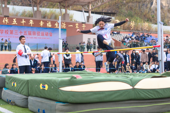 走进赛场,“加油”“加油”……赛场上的助威声此起彼伏,不绝于耳,赛场的气氛一浪高过一浪。跑道上的少年郎你追我赶,美少女争先恐后,只为了能够最先碰触那条胜利的红线。接力赛最是激烈,运动员手握接力棒,聚精会神,时刻准备迎接那一棒,小组队员配合得激烈而不失默契,现场气氛热烈而高涨。跳高、跳远、实心球等个人项目中,运动员个个激情满满,当矫健的身姿弹跳起的那一瞬间,当轻盈的身躯掠过跳竿的刹那,当有力的双臂推出一道完美的弧线,那是力与美的展示,那是青春与激情的纵情释放。在三天的时间里,全校学生尽情挥洒着青春的活力和激情,充分展示了运动员在赛场盛会奋力拼搏、勇于竞争的精神。