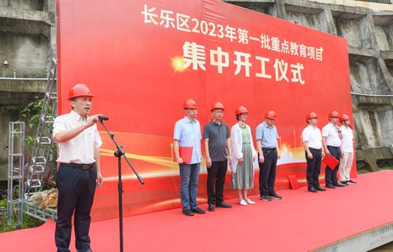 陈航星副区长进行致辞并宣布正式开工,他强调区委、区政府坚持以习近平新时代中国特色社会主义思想为指导,紧紧围绕“加快建设现代化教育强区、以高质量教育支撑高质量发展”战略目标,持续推动教育优先发展、科学发展、创新发展。此次全区重点教育项目集中开工,标志着长乐教育发展的崭新出征。下一步,长乐围绕打造现代化教育强区,将教育重点项目建设好、使用好、管理好,以教育项目的大突破,带动教育事业的大提升、民生工作的大提质、区域发展的大提速,努力在新的起点上,续写长乐教育新的辉煌。