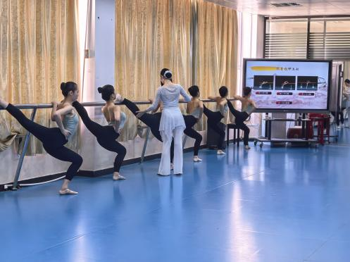 谷苗凤老师紧扣古典舞“形、神、劲、律”核心要素,通过动作拆解与慢速示范,精准指导学生掌握发力与呼吸技巧,并采用分层教学与多镜头切换,兼顾整体与细节,有效提升了线上教学的适应性与学习效果。